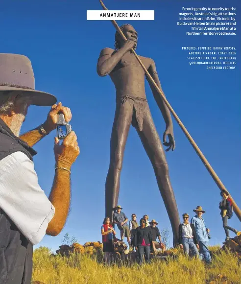 'anmatjere man' airelon sculpture nt. The amazing anmatjere woman and child sculpture in aileron nt. The australian farmer in wudinna by sculptor marijan bekic and his son david. Built in 2005 to draw passing traffic in off the highway, they are very visually obvious and imposing. Anmatjere is the location of two sculptures, anmatjere man and anmatjere woman and child.